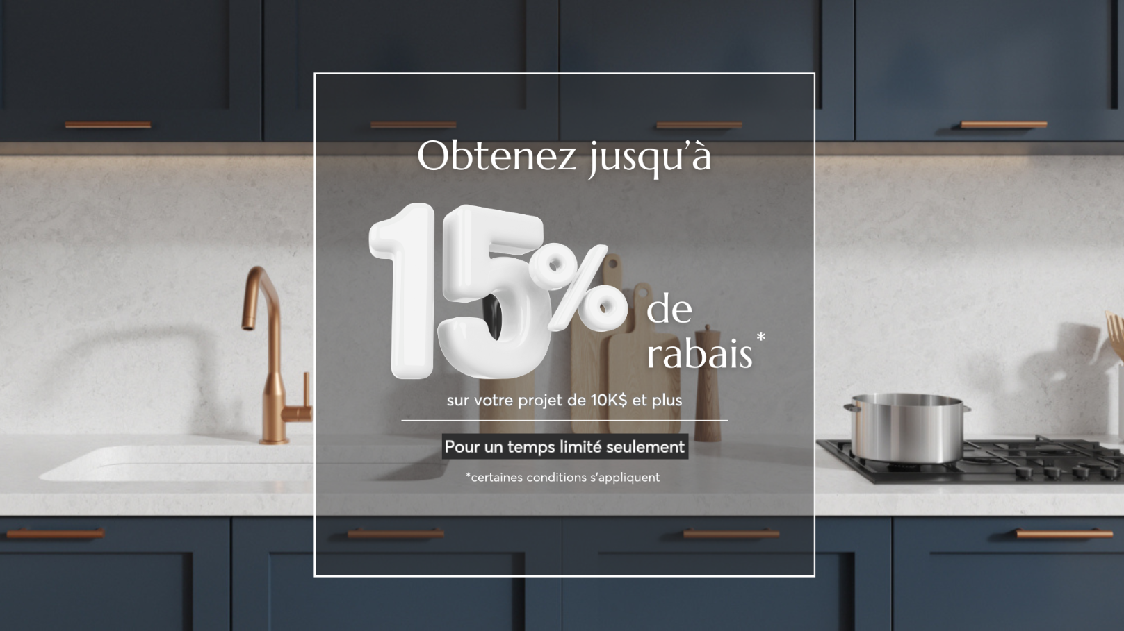 Complétez votre transformation avec la touche finale. Nous offrons une gamme complète de produits connexes pour personnaliser votre projet tel que les comptoirs, les poignées, les accessoires de rangements ; sans oublier une vaste gamme de compléments tels que les éviers, la robinetterie et bien plus encore!